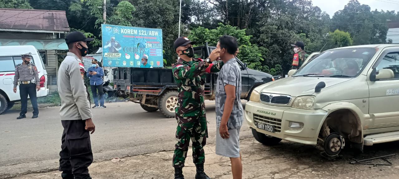 Serma Aspan mengatakan adapun giat yang di laksanakan menegur dan memberi himbauan kepada warga untuk selalu mentaati protokol kesehatan menggunakan masker, mencuci tangan, menjaga jarak serta menghindari keramaian, membagikan masker bagi warga pengendara yang tidak memakai masker.